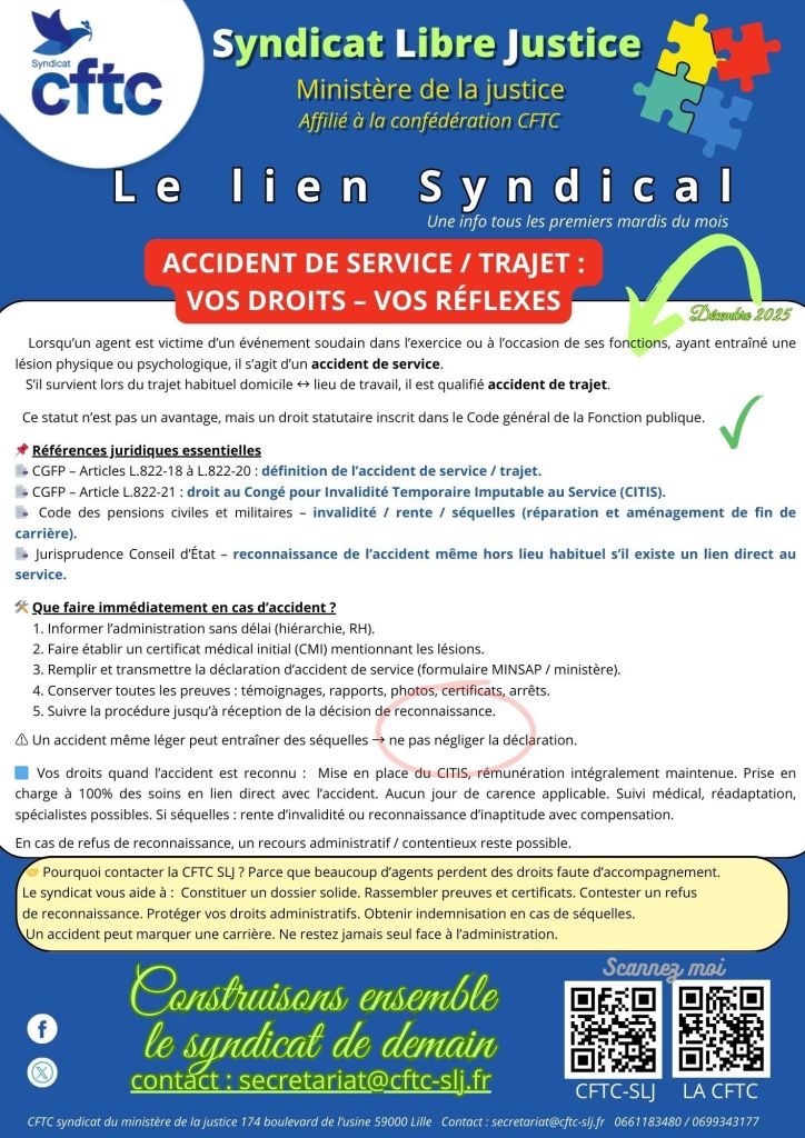 🤝 Pourquoi contacter la CFTC SLJ ? Parce que beaucoup d’agents perdent des droits faute d’accompagnement.