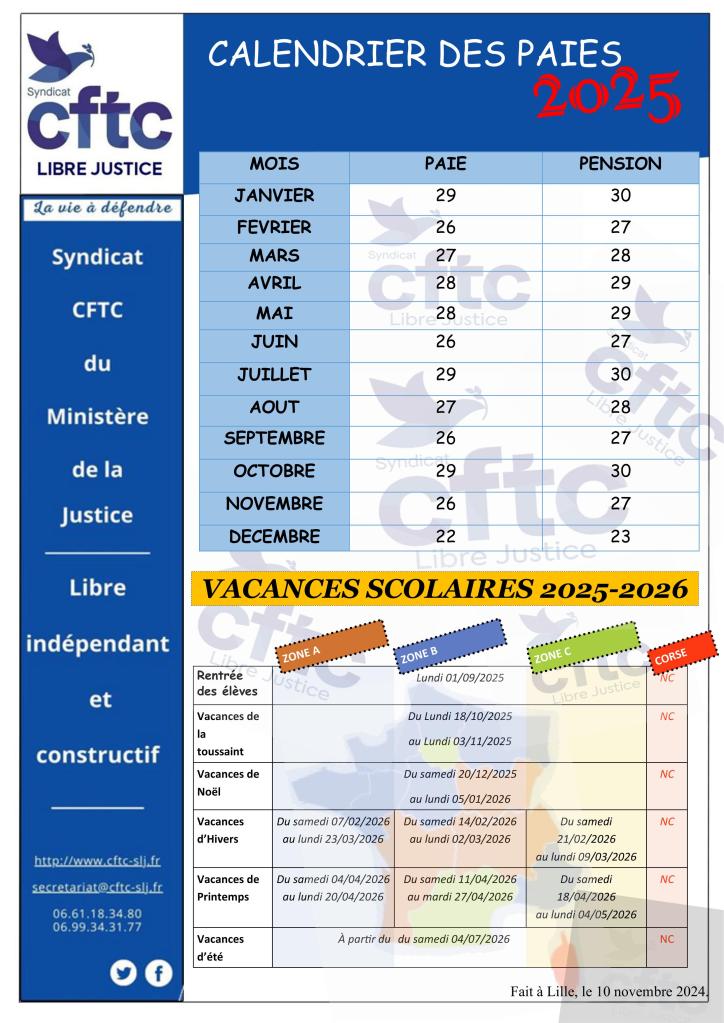 Dates prévisionnelles de paiement de la paie des agents publics :