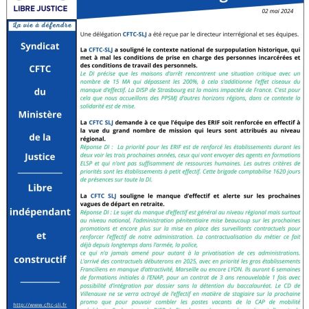 Délégation CFTC-SLJ reçue à la DISP Strasbourg